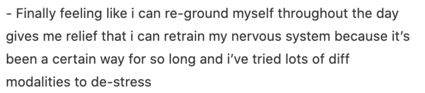 We set up weekly, practical action steps - and you're held accountable to follow through using our dedicated 1:1 chatroom for Q&A, guided in-practice adjustments and check-ins.